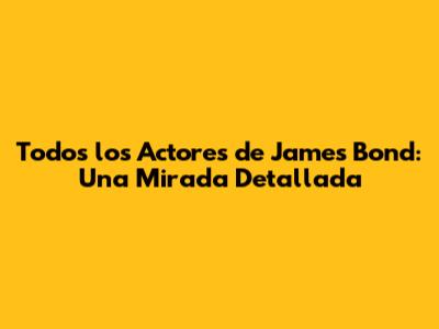 Todos Los Actores De James Bond: Una Mirada Detallada
